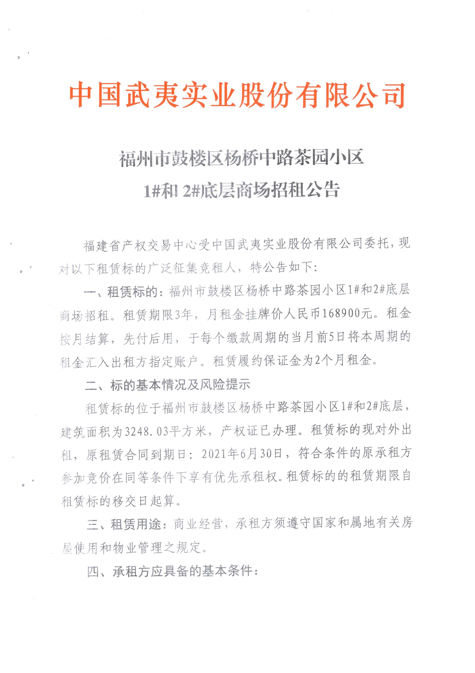 【招租公告】william威廉中文官网关于福州市鼓楼区杨桥中路茶园小区1#和2#底层商场的招租公告